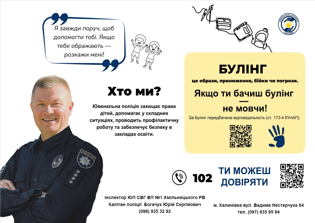 – Гаряча телефонна лінія щодо булінгу 116-000;